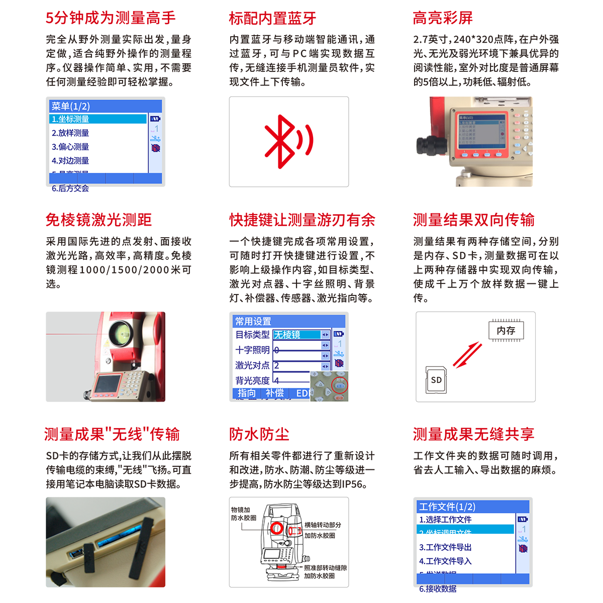 ¾«¶È | 0~500m£º¡À£¨3+2¡Á10-6¡¤D£©mm 500~1000m£º¡À£¨5+2¡Á10-6¡¤D£©mm 1000~2000m£º¡À£¨10+2¡Á10-6¡¤D£©mm |