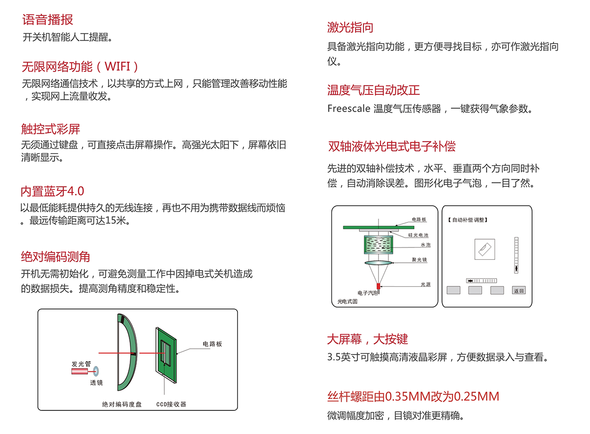 ¾«¶È | 0~500m£º¡À£¨3+2¡Á10-6¡¤D£©mm 500~1000m£º¡À£¨5+2¡Á10-6¡¤D£©mm 1000~2000£º¡À£¨10+2¡Á10-6¡¤D£©mm |